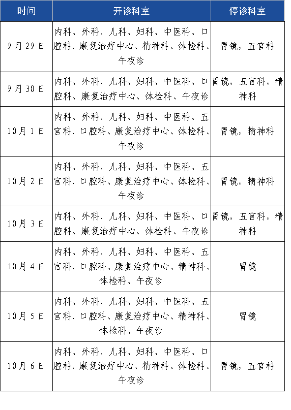 广东省第二荣军医院2023年中秋国庆期间门诊时间安排