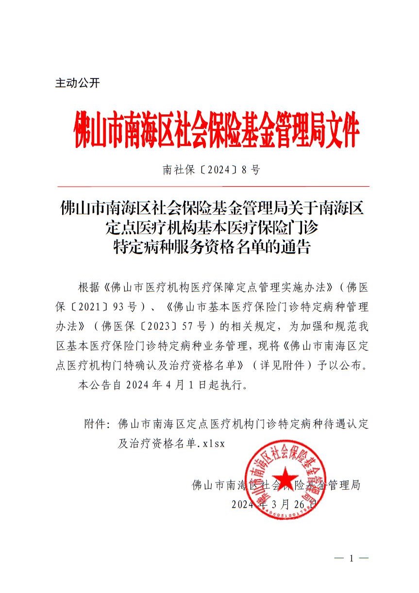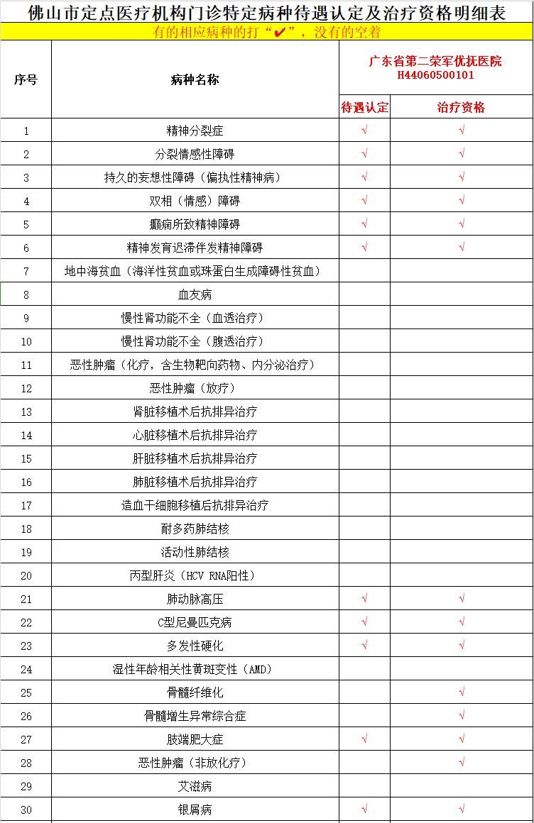 我院门诊特定病种一览表,南海区定点医疗机构发布,快快收藏!