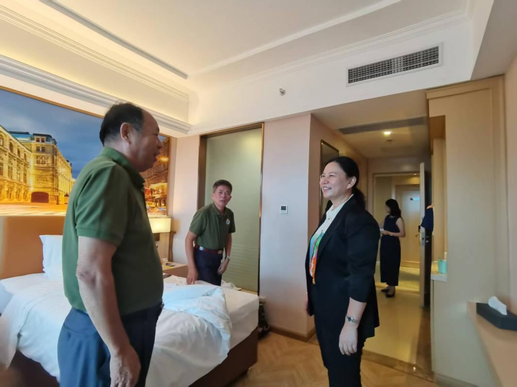 9月24日,叶焕源书记、张容院长亲自前往安置酒店,亲切探望已安顿好的疗养荣军和值守工作人员,查看了安置点的饮食安排、医疗保障等细节,要求确保荣军们在台风期间生活无忧。荣军们对医院的周到安排表示满意,一位荣军感动地说:“从医院到安置点,一路上都有人细心搀扶,到了这里吃住都安排得很好,我们很安心。”这种全方位的守护理念,体现了医院对荣军群体的深切关怀。