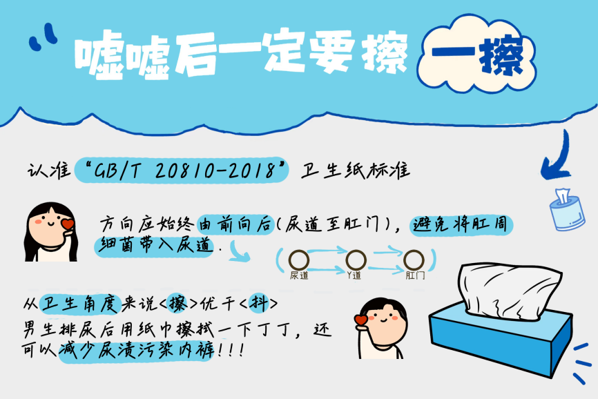 2.注意个人卫生:女性在如厕后应养成从前向后清洁的习惯,以减少细菌感染尿道的风险;男性则应保持包皮的清洁,降低感染的可能性。但需要注意避免过度清洁,建议使用温和的清洁产品进行清洁,避免破坏尿道口天然的屏障功能。