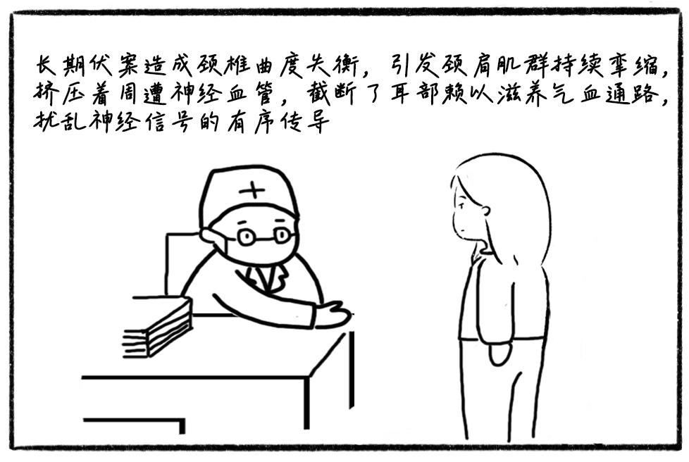 三个月前,长期伏案工作的李小姐,逐渐感到颈部酸胀、疼痛,活动也变得受限,幸运的是她还没出现放射痛。