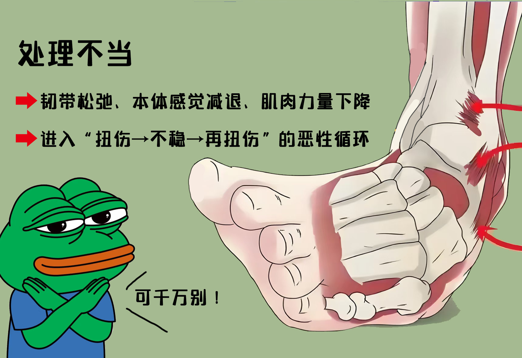 踝关节是人体承担全身体重的重要关节,同时也是一个极不稳定的关节,尤其以踝内翻损伤最为常见。一次急性扭伤后,如果处理不当,往往会导致韧带松弛、本体感觉减退、肌肉力量下降等问题,从而进入“扭伤→不稳→再扭伤”的恶性循环。
