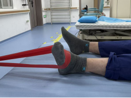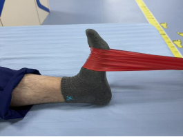 弹力带抗阻:使用弹力带进行踝关节各方向训练,15个/组,2-3组/次,组间休息30秒。