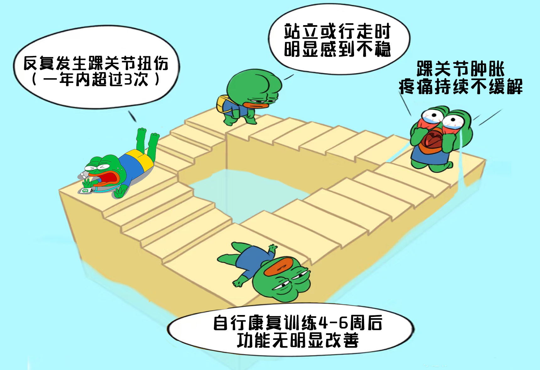 踝关节康复是一个系统工程,需要综合运用平衡、力量和神经肌肉控制等多种训练方法,并保证足够的频率和持续时间。但如果您有出现以下情况,还是建议及时就医!