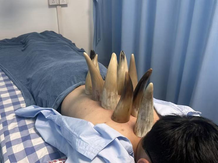原理:角罐疗法是使用犏牛或水牛的牛角制成的罐具,通过火力形成负压吸附于体表特定部位,并结合刮痧、点穴、推拿等多种治疗手法,具有温通经络、祛风散寒、消肿止痛、排毒等功效的一种拔罐技术。